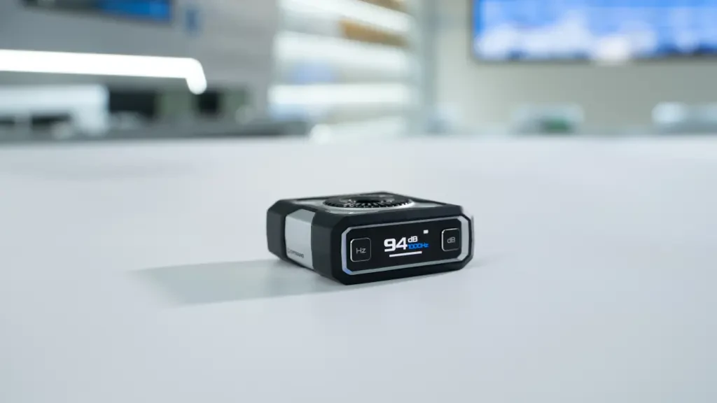 声级校准器本质上是一个参考声源:它会在某个规定频率点输出幅度已知且稳定的标准声压级(SPL),常见频率为 1 kHz(部分型号也提供 250 Hz)。不同型号的标称声压级常见为 94 dB 或 114 dB。