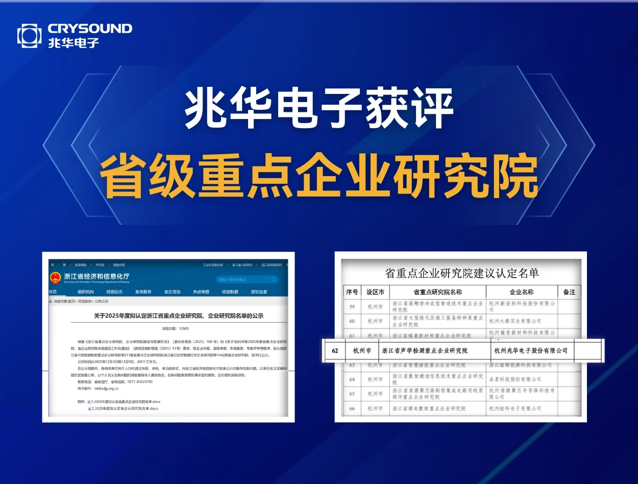 近日,浙江省经济和信息化厅发布《关于2025年度拟认定浙江省重点企业研究院、企业研究院名单的公示》。其中,兆华电子“浙江省声学检测重点企业研究院”成功获评“浙江省重点企业研究院”。 “浙江省重点企业研究院”是浙江省技术创新体系的重要组成部分,重点面向关键核心技术突破、创新资源集聚、补强产业链创新短板与成果转化能力建设。 图源:浙江省经信动态 此次获评,充分体现了兆华电子在声学测试与声学感知技术领域持续研发投入与工程化能力方面的综合实力。公司相关技术已广泛应用于工业、能源、汽车等行业的测试、研发与生产环节,为产业提供可靠声学检测解决方案。 未来,兆华电子将继续以技术研发为核心,夯实声学测试基础能力,发挥省级重点企业研究院的创新平台作用,为相关产业的高质量发展提供长期、可靠的技术支撑。