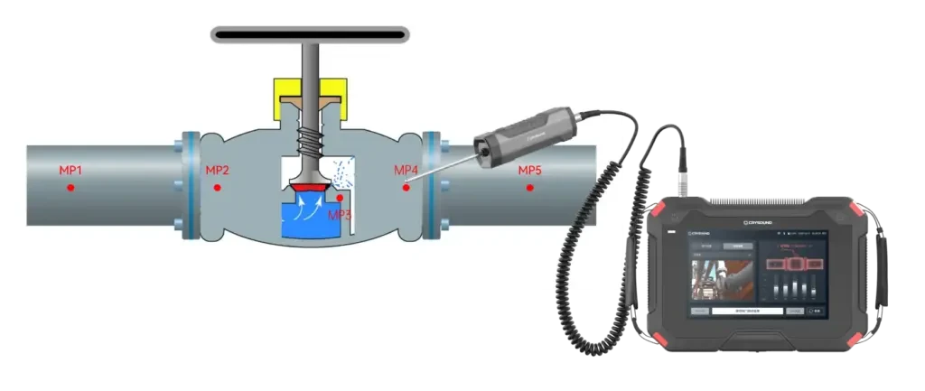 2)测点怎么布:MP1–MP5(覆盖上游—阀芯—下游)