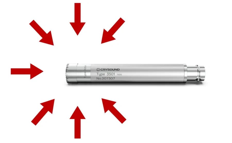 自由场可理解为:空间中几乎没有反射,声波主要从一个方向(通常取传声器法线方向0°)到达。但传声器本体会对声场产生扰动,因此自由场传声器往往带有“自由场补偿”,目标是在自由场条件下读到更接近“传声器放入前”的声压。
