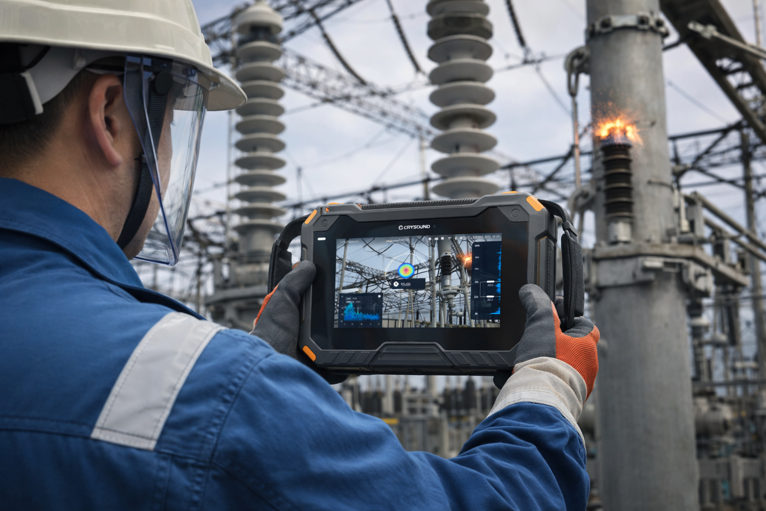 在变电站和配电系统中,局部放电并不总是以“明显故障”的形式出现。很多时候,它先表现为绝缘老化、连接部位异常、器件表面沿面放电或微弱悬浮放电。如果这类早期异常不能被及时识别,后续就可能演变为更严重的绝缘失效、设备停运甚至安全事故。 对于电气运维团队来说,真正的难点不只是“是否存在局放”,而是如何在设备多、距离远、带电风险高、干扰复杂的现场条件下,尽快把异常点找出来。声学成像仪的价值,正是在这一环节体现出来: 它能够帮助巡检人员在安全距离外快速发现和定位可疑局放点,提高排查效率和判断直观性。 一、为什么局部放电排查是电力系统中的高频难题 无论是变电站一次设备,还是配电线路与终端连接部位,局部放电都具有“早期弱、分布散、隐藏深”的特点。实际工作中,团队经常会遇到以下情况: 设备类型多,开关柜、绝缘子、母排、电缆连接点等都可能成为异常源。 不少部位带电运行,人员无法轻易近距离接触。 放电初期信号弱,肉眼和常规巡查难以及时识别。 异常位置确认耗时,后续复核和处理效率容易被拖慢。 这意味着,局放检测并不是单纯“有没有问题”的判断题,而更像是一项对定位效率、现场安全和经验判断都要求较高的综合工作。 设备密集、点位分散、风险隐蔽,是电力系统局部放电排查中的典型挑战。 二、传统方法为什么容易漏掉早期局放 传统巡检通常依赖人工经验、定点检测和阶段性排查。对于已经比较明显的异常,这些方法依然有价值,但在早期局放场景里往往存在局限: 点检覆盖范围有限,难以快速筛查大范围设备。 对弱放电和间歇性异常不够敏感,容易错过早期征兆。 高压或高位设备检测条件受限,靠近操作存在安全压力。 即使发现异常,也往往还需要花时间二次确认具体位置。 因此,现场真正需要的是一种既能远距离工作,又能把异常“指给人看”的工具,帮助团队先把可疑点快速收敛,再开展后续分析和处理。 依赖传统人工经验和定点检查时,早期弱放电异常往往不容易被及时发现。 三、声学成像仪如何帮助巡检人员快速定位局放点 声学成像仪通过采集并可视化超声信号,让巡检人员能够在复杂现场中更直观地识别异常放电区域。相较于单纯依赖经验判断,它在局放排查中的优势主要体现在几个方面: 支持安全距离外检测,适合高压、高位或不便接近的设备。 能够在较短时间内对一片区域进行快速扫描,提高排查效率。 可将异常声源位置可视化,帮助人员更快确认疑似故障点。 适合与既有巡检流程结合,先筛查、后复核,提升整体工作节奏。 对于电力巡检来说,声学成像仪并不是孤立存在的检测手段,而是一个能把“发现异常”和“定位异常”串起来的高效工具。 巡检人员使用兆华 CRYSOUND 声像仪,可在安全距离外更直观地发现并定位可疑局放点。 四、变电站中的典型应用场景 在变电站环境中,局放风险往往集中在绝缘、连接和封闭结构的关键部位。以下几个场景是声学成像仪的典型应用点。 1. 开关柜 开关柜内部空间封闭,柜内异常放电不容易直接观察。声学成像仪可通过观察口或检修口对柜内异常进行快速排查,帮助巡检人员确认是否存在局放以及大致放电区域。 开关柜局部放电检测案例图,声学成像结果可帮助巡检人员更快锁定异常位置。 2. 导线与连接部位 变电站导线和连接结构较多,一些微弱悬浮放电或接触异常在日常巡查中并不容易直接发现。声学成像仪能够帮助人员快速识别弱放电信号,缩短异常点确认时间。 对导线和连接结构进行远距离扫描,有助于更早发现微弱异常。 3. 高压室绝缘子 高压室环境对人员安全距离要求高。使用手持式声学成像仪,巡检人员可以在不贴近设备的情况下完成检测,在兼顾安全性的同时提高排查效率。高压室绝缘子局部放电检测案例图,可在安全距离外更直观地识别异常放电点。 4. 穿墙绝缘子 穿墙绝缘子和类似部件一旦出现沿面放电,往往意味着运行状态已经出现风险。声学成像仪可以帮助团队快速锁定可疑区域,为后续停电检修或专项复核提供依据。 对于高压室绝缘子和穿墙绝缘子,安全距离外定位异常尤为重要。 五、配电系统中的典型应用场景 相比变电站,配电系统更强调线路分布广、终端连接多和现场环境复杂。声学成像仪在以下场景同样具有很强的应用价值。 1. 悬式绝缘子 配网线路中的绝缘子一旦出现异常放电,早期往往并不容易被发现。借助声学成像仪,巡检人员可以在较远距离内对可疑点做出初步判断,减少盲目排查。 悬式绝缘子局部放电检测案例图,可在远距离条件下更直观地识别异常放电位置。 2. 电缆分接箱 T 型接头、母排连接和多回路结构使得电缆分接箱成为局放隐患较集中的区域。利用声学成像进行排查,可以更直观地锁定异常连接位置,帮助团队减少反复开盖和重复确认。电缆分接箱局部放电检测案例图,可更直观地定位连接部位的异常放电点。 3. 跌落式熔断器 熔断器缺陷不仅会带来局放风险,也可能影响保护功能的可靠性。对于这类设备,声学成像仪能够帮助巡检人员在常规巡检中更快筛出可疑异常点。跌落式刀闸局部放电检测案例图,可帮助巡检人员更快识别沿面异常放电位置。 4. 支撑绝缘子 支撑绝缘子一旦发生持续局部放电,会逐步影响其绝缘性能。声学成像仪检