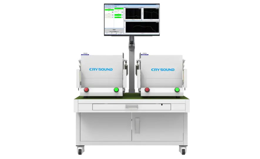 在常见应用中,两台CRY710+CRY6151B的组合可以实现 TWS 耳机的一拖四常规音频测试。其尺寸设计符合大多数产线布局要求,便于一个操作员操作两台工位,效率最大化。