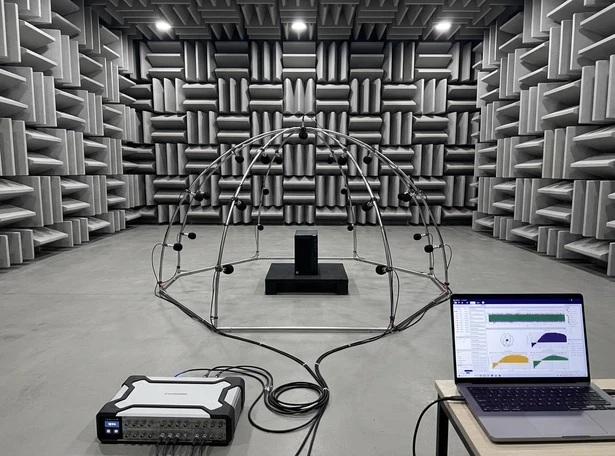在欧盟《机械噪声指令》等法规要求下,从玩具、电动工具到 IT 设备,越来越多产品需要在铭牌或资料中声明声功率级,而不是只说“听起来不吵”。 在笔记本电脑这类典型办公设备上,空闲状态往往只有 30 dB(A) 左右,满载时可能接近 40 dB(A),这些数值就来自按 ISO 3744 等标准做的声功率测试。 声压 vs 声功率 声源辐射的是声功率,我们在麦克风上测到的是声压。声压会随着房间大小、混响、测点距离等条件变化,而声功率是声源自身的“噪声能量”,不随布置和环境改变,因此更适合作为产品噪声的评价指标。 简单说: 声功率是“原因”(源发出的能量,单位 W / dB); 声压是“结果”(听到的声压级,单位 Pa / dB)。 ISO 3744 要做的,就是在“近似自由声场 + 反射平面”的条件下,用一圈麦克风把声源包围起来,通过测得的面上声压级,按规定的修正和换算步骤,得到稳定、可比对的声功率级。 测试对象:一台日常使用的笔记本电脑 假设我们的被测对象是一台 17 英寸的办公笔记本,测试目标是:在不同工况下(空闲、办公负载、满载)测得其 A 计权声功率级,用于: 对比不同散热方案、风扇策略的噪声表现; 为产品说明书或合规认证提供标准化数据; 为声品质工程(例如风扇噪声“是否恼人”)提供基础数据。 测试环境采用半消声室,地面为反射平面,笔记本放置在反射平面上,周围布置若干测量点(可采用半球架或规则布点),整体方案符合 ISO 3744 对测量面和环境的要求。 测量系统:SonoDAQ Pro + OpenTest 声功率模块 硬件上,我们使用SonoDAQ Pro配合测量麦克风,按标准布置在笔记本周围。OpenTest 通过 openDAQ协议与SonoDAQ连接,在通道设置中完成通道选择与灵敏度、采样率等参数设置。 从标准到平台:为什么用 OpenTest 做声功率测试? OpenTest 是 兆华电子CRYSOUND 面向声学与振动测试打造的新一代平台,支持测量、分析、序列三种模式,可覆盖研发实验室和生产线重复测试场景。 在声功率方向,OpenTest 的解决方案基于声压法,完全符合 ISO 3744 工程法,同时覆盖 ISO 3745 精密法和 ISO 3746 简易法,可根据场地条件和精度要求灵活选择测试等级。平台内置声功率专用报告模板,可直接输出符合国际标准的测试报告,避免团队反复维护 Excel。 在硬件层面,OpenTest 通过 openDAQ、ASIO、WASAPI 以及 NI-DAQmx 等接口连接多品牌数据采集设备,对 CRYSOUND SonoDAQ、RME、NI 等硬件统一管理,从几路验证到多通道阵列都可以在一套软件里完成。 三步走:按 ISO 3744 跑通一套标准化声功率流程 第一步:参数配置与环境准备 在 OpenTest 中新建工程后: 在通道设置中勾选将要使用的麦克风通道,设置灵敏度、采样率、频率计权等参数。 切换到 测量 > 声功率,设置测量参数: 采用的测试方法、测量面相关参数; 点位布设; 测量时间; 其他与 ISO 3744 对应的参数。 这一步实质上是把标准条款“落地”为一个可复用的 OpenTest 场景模板。 第二步:先采背景噪声,再采设备运行 按照 ISO 3744,需要在相同测量面上分别测量“设备关闭”和“设备运行”状态下的声压级,以便进行背景修正。 在 OpenTest 中,这对应两次非常清晰的操作: 采集背景噪声点击功能栏中的“背景采集噪声”图标,系统按预设时长采集环境噪声。 在 简易法下,OpenTest 每秒刷新各通道LAeq; 在 工程法、精密法下,以每秒刷新 1/3 倍频程各频点的 LAeq。 采集设备运行时的噪声背景采集完成后,点击“测试”图标,OpenTest 将: 按预设时长采集笔记本运行时的噪声; 每秒刷新实时声压级; 自动保留本次测试的数据集,方便后续回放与对比。 第三步:从多次测量到一份标准化报告 完成多个工况(例如:空闲、典型办公、满载压力测试)后: 在数据集中勾选需要对比的记录,可叠加查看不同工况下的声功率差异; 在数据选择器右上角点击保存图标,可导出对应的波形文件和CSV数据表,供进一步处理或归档; 点击功能栏中的 Report,填写项目与设备信息,选择需要纳入报告的数据集,调整图表与表格后,一键导出 Excel 报告。 报告中将包含测量条件、测量面、频带或 A 计权声功率级、背景修正等关键信息,可直接用于内部评审或法规/客户提交,这与 Dewesoft 声功率方案导出标准化 Excel 报告的思路是一致的。 从一次笔记本测试,到一套可复用的声功率平台 按 ISO 3744 给一台笔记本做声功率测试,只是一个具体案例。更重要的是: 标准化的 OpenTest 场景可以被克隆到打印机、家电、电动工具等产品测试中; 多通道麦克风阵列与 SonoDAQ 等硬件可以在同一平台下复用; 测试流程与报告格式被软件“固化”,便于团队之间交接和长期审计 如果你正在搭建或升级声功率测试能力,可以考虑以 ISO 3744 为骨架,用 OpenTest 把环境、采集、分析和报告串成一条可重复的链路,让每一次声功率测试都清晰可追溯,也更容易从“单次试验”沉淀成“工程资产”。 欢迎访问 www.opentest.com 了解更多 OpenTest 功能与硬件方案,或联系 兆华电子CRYSOUND 团队获取演示与应用支持。