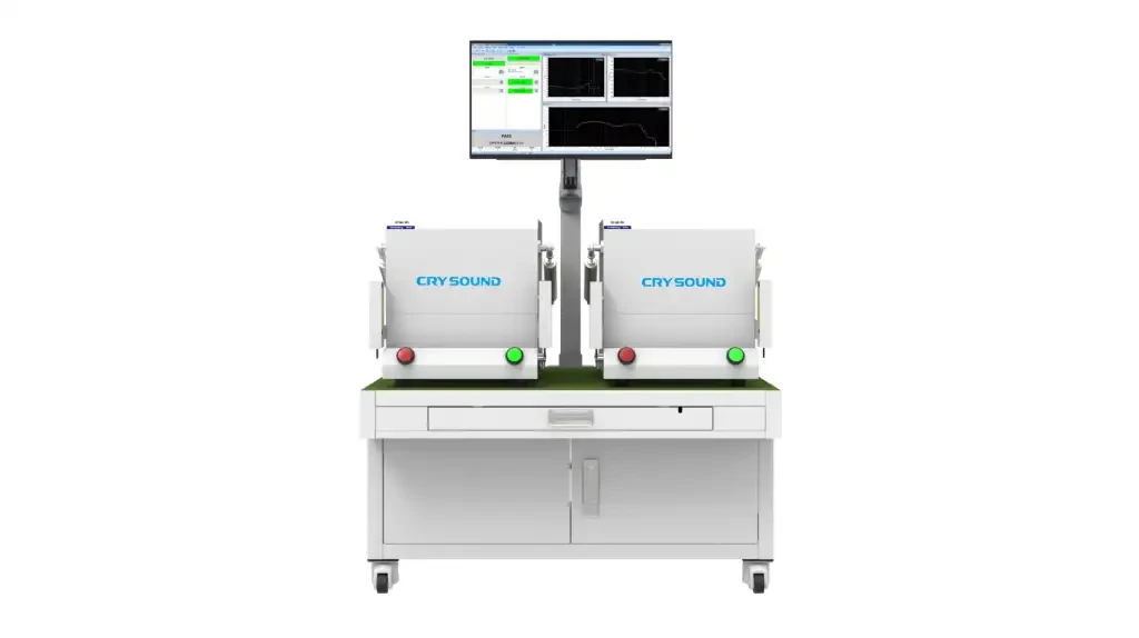 在常见应用中,两台CRY710+CRY6151B的组合可以实现 TWS 耳机的一拖四常规音频测试。其尺寸设计符合大多数产线布局要求,便于一个操作员操作两台工位,效率最大化。