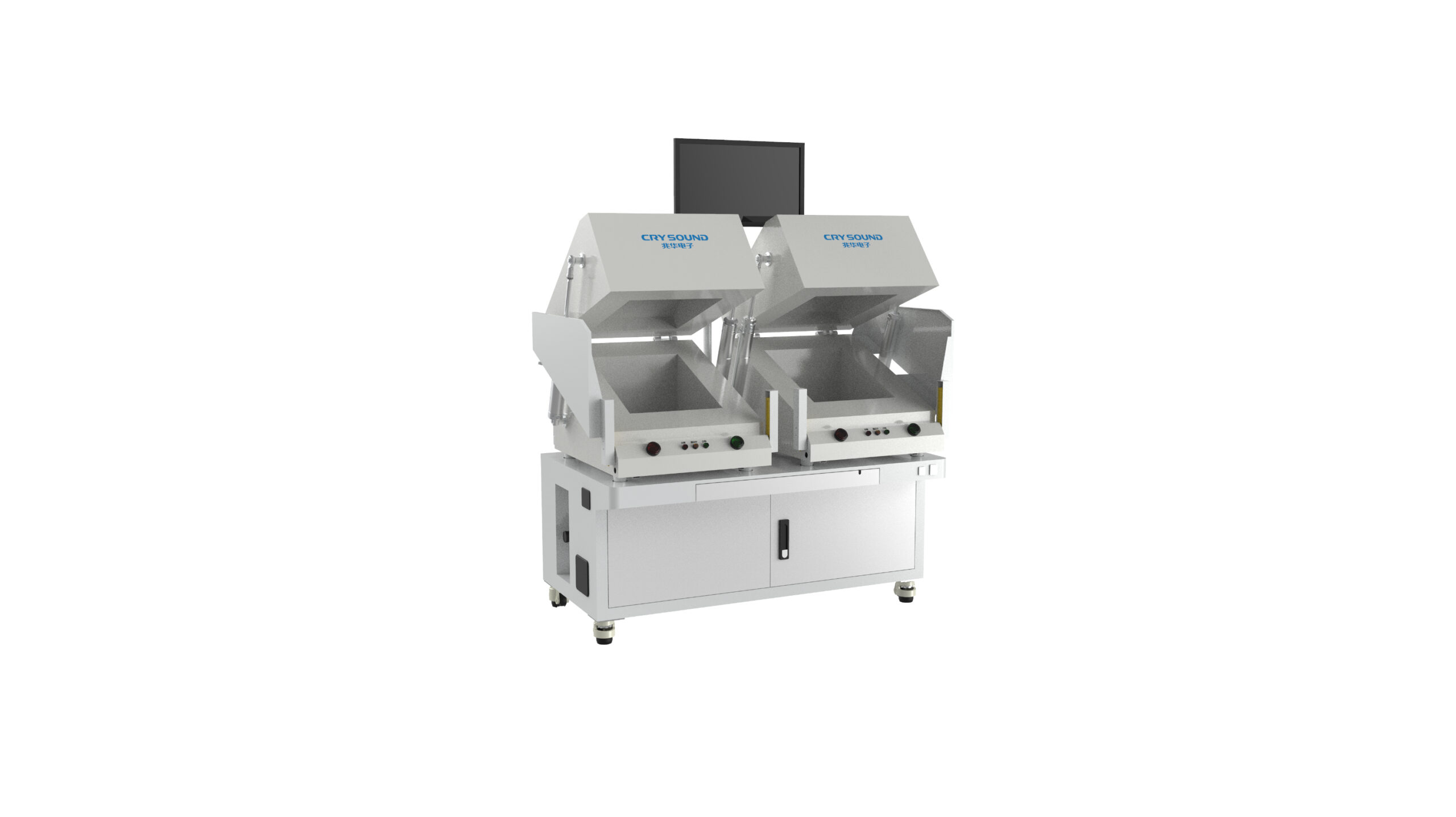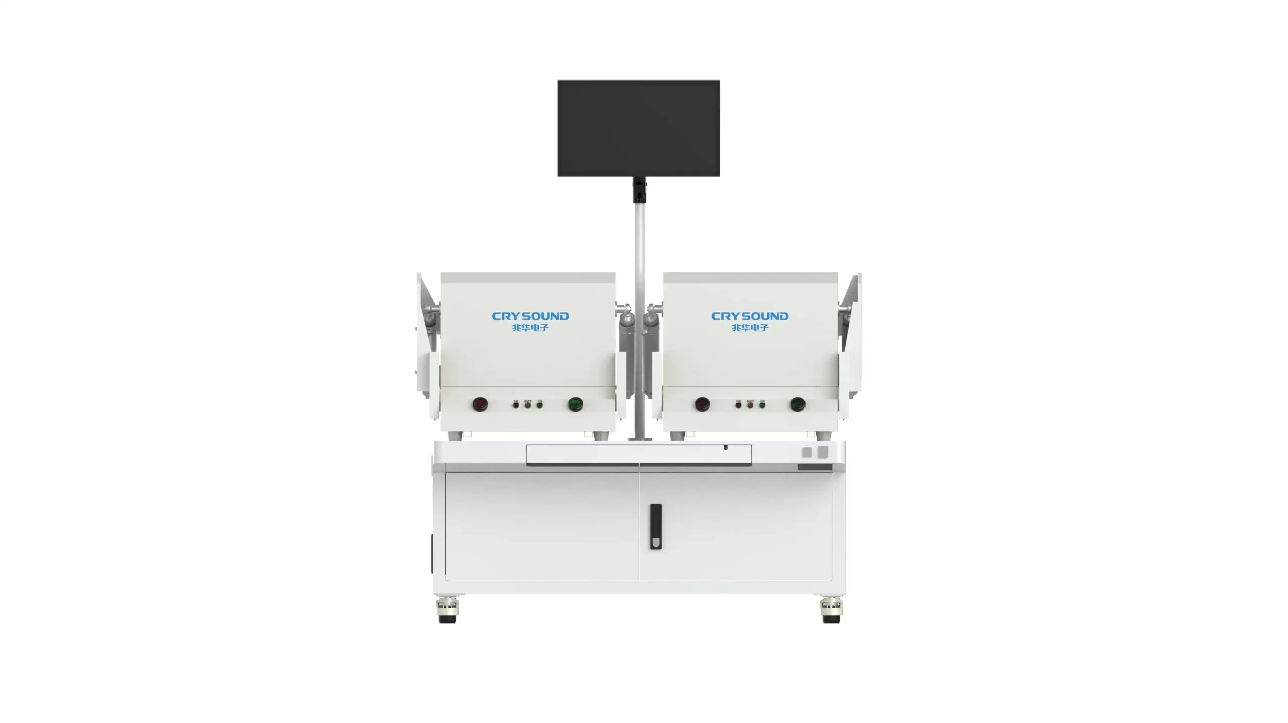 在常见应用中,两台CRY723 + CRY6151B 可实现 TWS 耳机的常规音频、ENC 和 ANC 一体化测试。其尺寸符合大多数产线布局要求,一个操作员可同时操作两台工站,最大化提高生产效率。