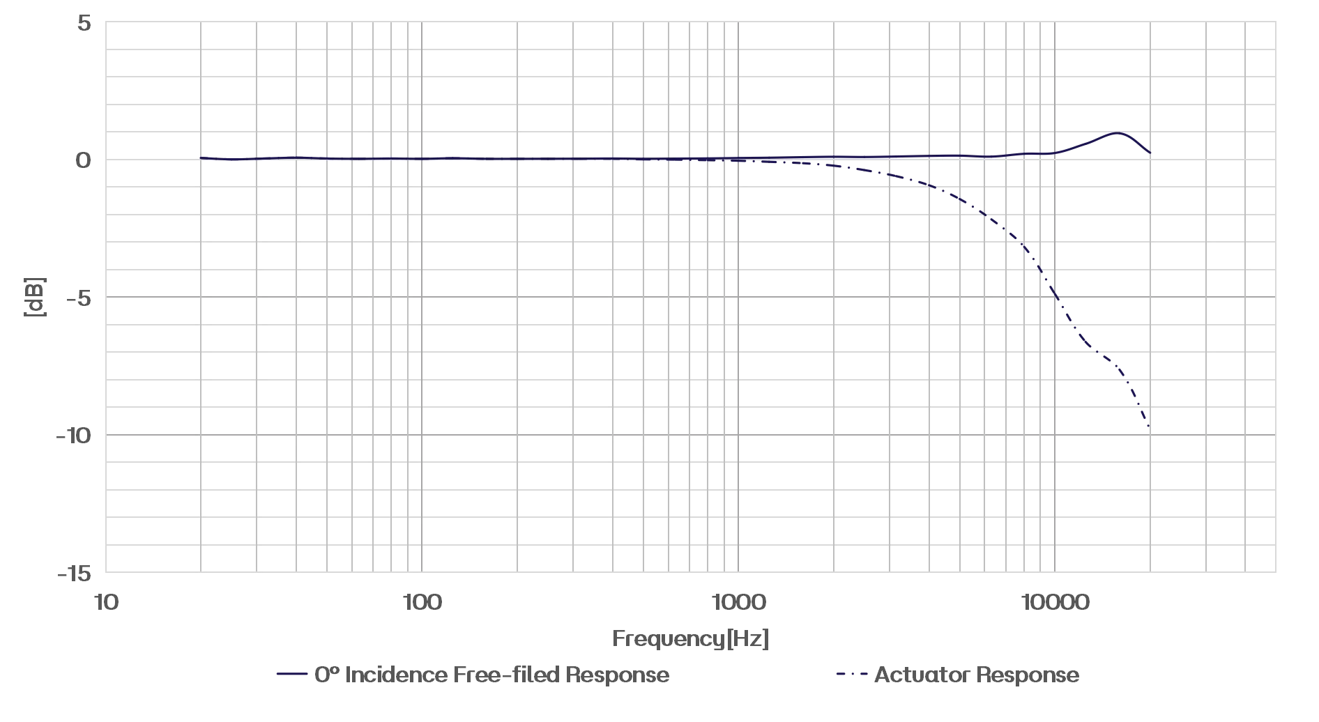 该图显示了自由场环境中 0° 入射的频率响应曲线以及使用静电激发方法获得的频率响应曲线。
