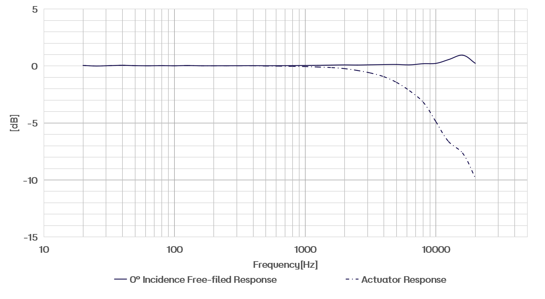 该图显示了自由场环境中 0° 入射的频率响应曲线以及使用静电激发方法获得的频率响应曲线。