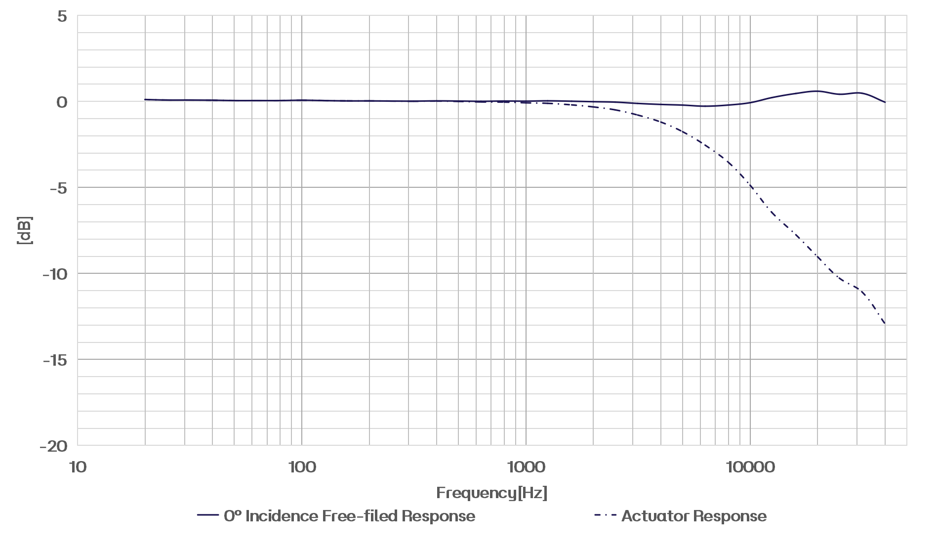该图显示了自由场环境中 0° 入射的频率响应曲线以及使用静电激发方法获得的频率响应曲线。