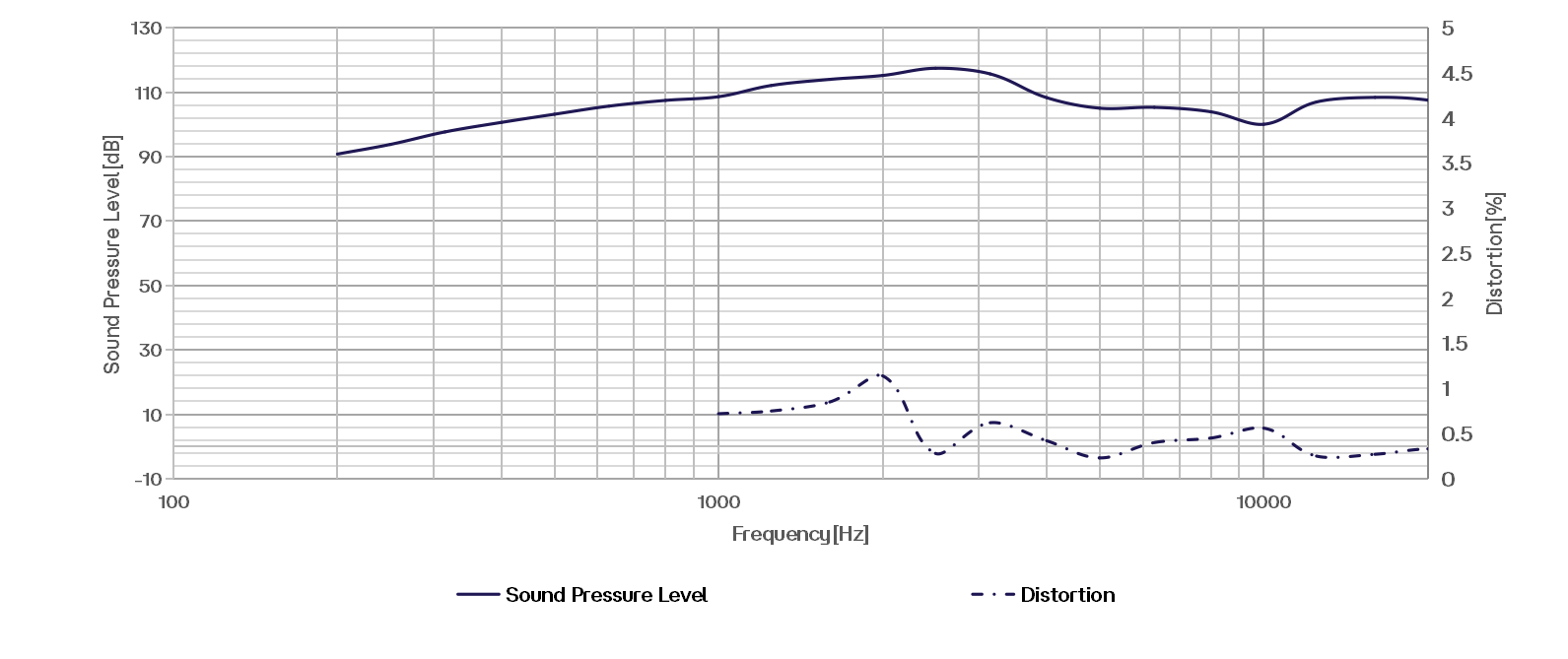 500Hz ~ 40kHz:110dB (25mmMRP);200Hz ~ 50kHz:94dB (25mmMRP)