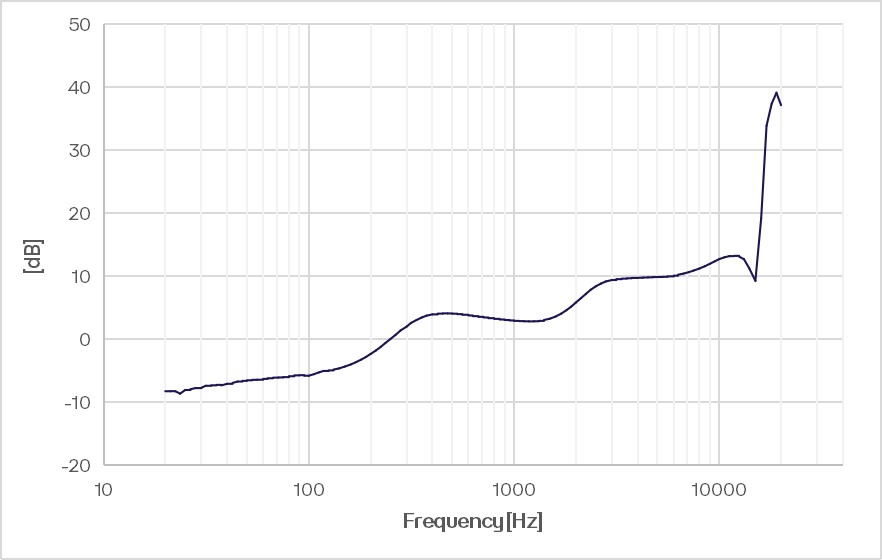 100Hz ~ 4kHz ±1dB(模拟人耳阻抗)、20Hz ~ 16kHz(耦合腔使用)