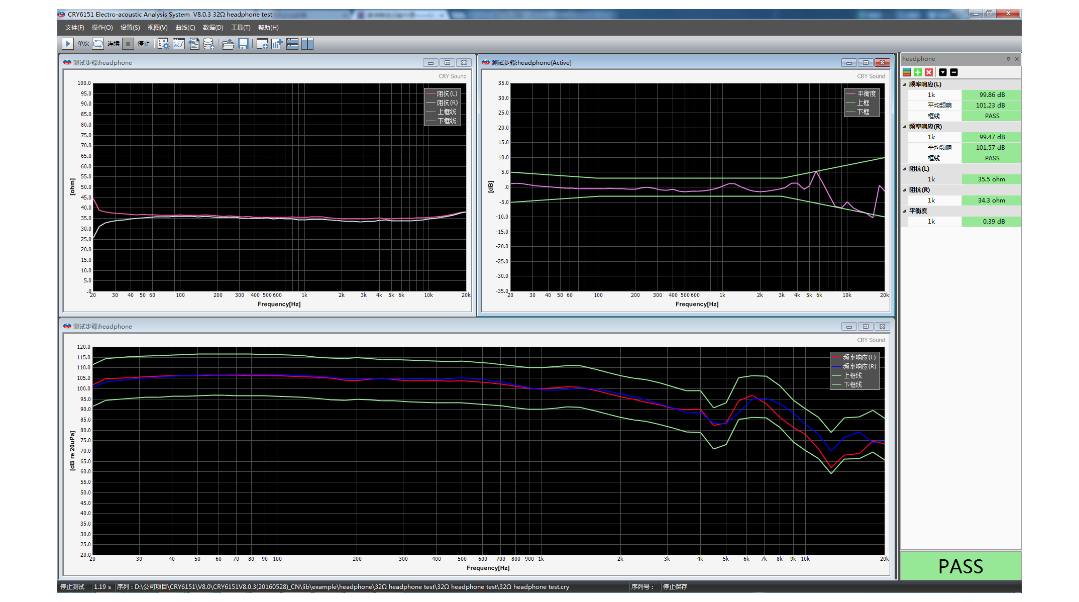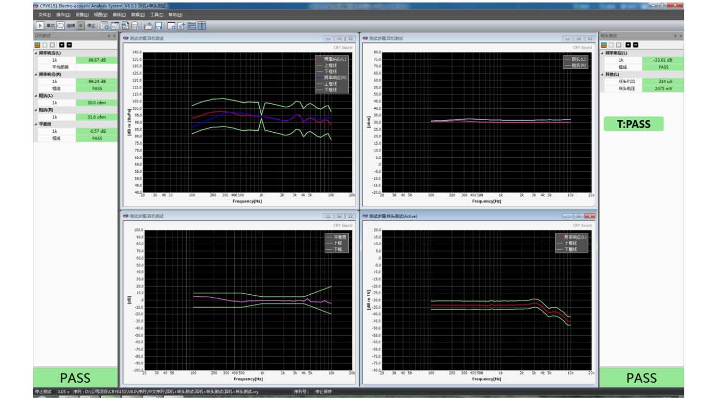 CRY6151B 是本公司最新推出的一款全功能电声器 件测试仪,功能强大,稳定性强,可测量耳机(USB、 蓝牙、抗噪声)、麦克风(驻极体、MEMS、动圈式)、耳 机麦克风组合件、受话器/耳机喇叭、扬声器/音箱(普 通、蓝牙)、音箱分频器件以及其它电声器件的性能指 标。如:灵敏度(SPL)、阻抗、失真(THD)、谐振频率 F0、左右耳机平衡度、左右耳机位置、相位极性、麦克 风电流电压、信噪比、麦克风指向性、扬声器 T&S 参数、 电话机接收 、 发送响度等 , 测试频率范围可达 20Hz—20kHz。